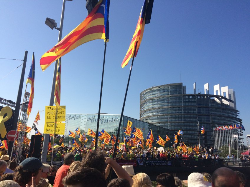 D’après la police et les organisateurs, ce sont environ 10 000 Catalans qui ont fait le déplacement jusqu’à Strasbourg pour manifester leur mécontentement concernant l’impossibilité pour trois députés européens espagnols d’accéder à l’hémicycle aujourd’hui. En effet, pour l’indépendantiste catalan Oriol Junqueras s’est vu refusé le droit d’aller au Parlement à Madrid pour prêter serment sur la constitution espagnole comme cela est la règle pour devenir député européen. En ce qui concerne Carles Puigdemont et Toni Comin qui ont également été élu en mai dernier et qui sont toujours en exil, ils ont refusé de faire le voyage jusqu’à Madrid pour réaliser la prestation de serment et ne peuvent donc être considérés comme des députés européens selon la loi espagnole.