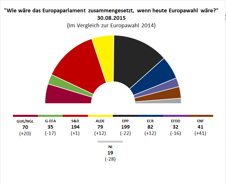 Die konservative ECR-Fraktion dagegen legt vor allem durch Gewinne in Polen auf 11 Prozent europaweit zu. In dem mitteleuropäischen Staat liegt die ECR-Partei PiS in Umfragen bei aktuell fast 50 Prozent. Auch die Parteien der liberalen ALDE können europaweit zulegen. Mit 10 Prozent liegt die Gruppierung einen Prozentpunkt höher als im Juli 2015.