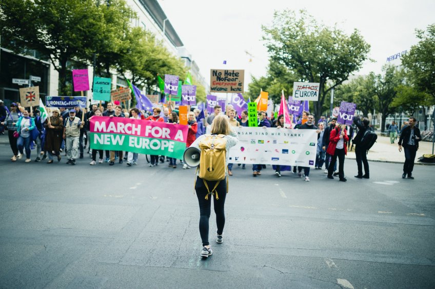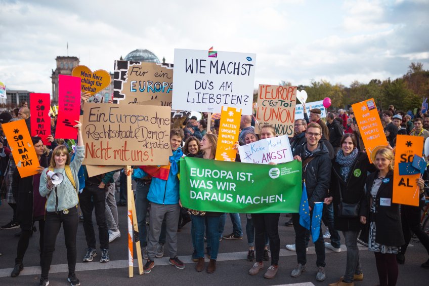 In Berlin und auch in Köln gingen junge Menschen mit der Unterstützung zahlreicher Organisationen beim March For A New Europe auf die Straße. Fotoquelle: Zur Verfügung gestellt von Frieder Unselt und Christine Mitru.